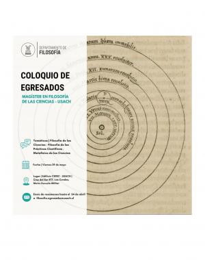 El Departamento de Filosofía de la Universidad de Santiago de Chile ha abierto la convocatoria al Primer Coloquio de Egresados del Magíster en Filosofía de las Ciencias, iniciativa que se realizará el próximo 29 de mayo en el edificio CEPEC, en la comuna de Las Condes.