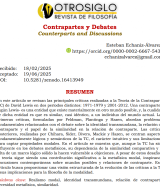 Esteban Echaniz, estudiante del Magíster en Filosofía de las Ciencias, publicó en la revista Otrosiglo un artículo en el cual explora las discusiones acerca de la Teoría de la Contraparte de Lewis.