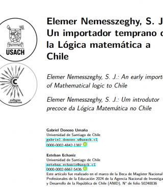 Gabriel Donoso, magíster en Filosofía de las ciencias por nuestra universidad, junto con Esteban Echaniz, tesista del mismo programa de magíster, publicaron un artículo sobre Historia de la Lógica en Chile titulado “Elemer Nemesszeghy, S. J.: Un importador temprano de la Lógica matemática a Chile”.